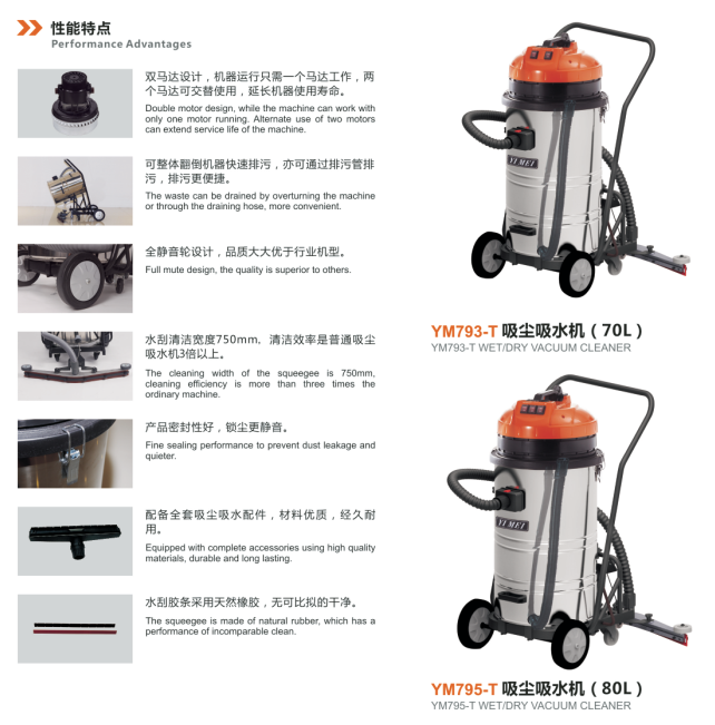 -水刮清潔寬度750mm,清潔效率是普通吸塵吸水機3倍以上。