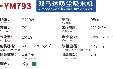 意美YM793 雙馬達吸塵吸水機70L